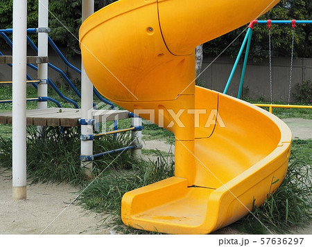 公園にある螺旋状の滑り台 の写真素材